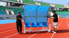 为给广大球迷奉献出 扣人心弦、精彩绝伦的足球盛宴 合川项目团队主动服务赛事测试、赛前热身 做好电力保障、场地清洁、设备布置 完善坐席布局、入场动线、功能用房 细致筹备、品质服务、全力保障